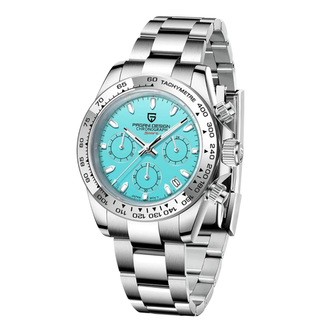 Pagani Design Silver Stainless Steel Tiffany Dial Chronograph Quartz Watch for Gents - PD-1727-S-CH SILVER/TIFFANY/SILVER