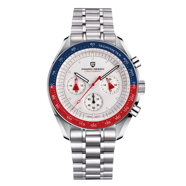 Pagani Design Silver Stainless Steel White Dial Chronograph Quartz Watch for Gents - PD1701