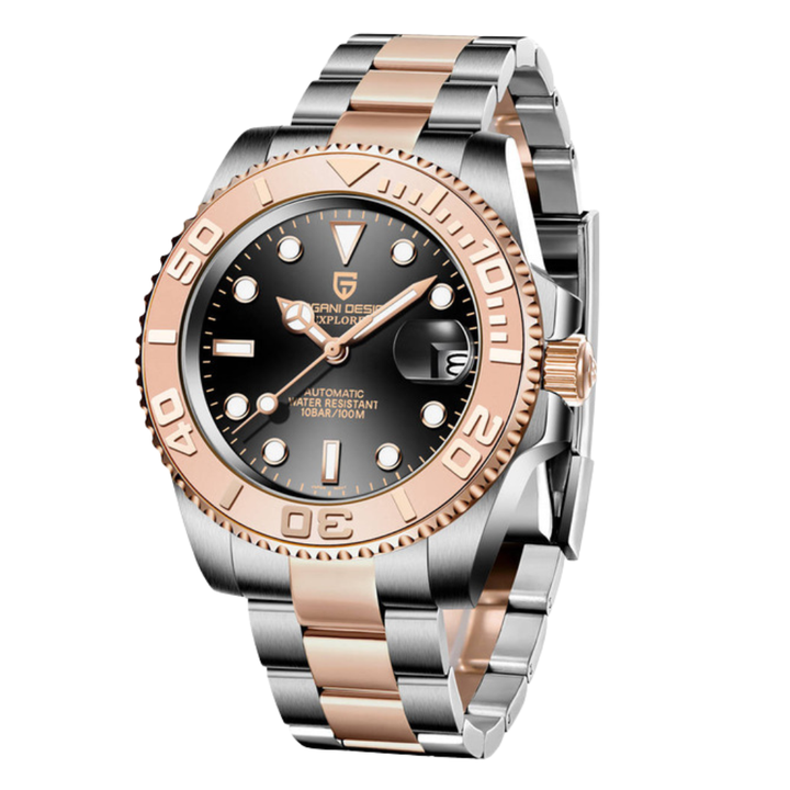 Pagani Design Two-tone Stainless Steel Black Dial Automatic Watch for Gents - PD1651