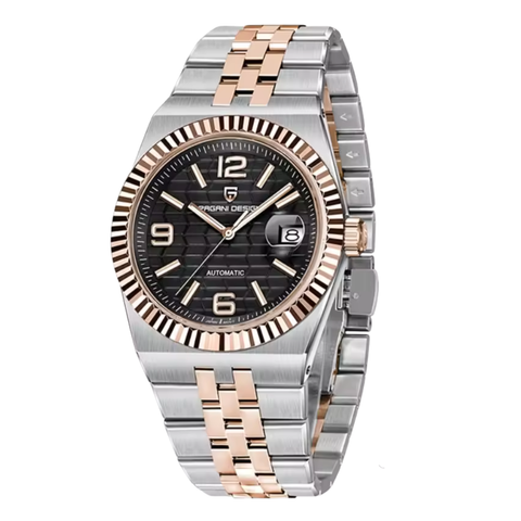 Pagani Silver & Rose Gold Two-Tone Stainless Steel Black Dial Automatic Watch for Gents – PD-YS027