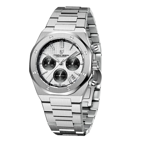 Pagani Silver Stainless Steel White Dial Chronograph Quartz Watch for Gents - PD-1707