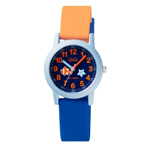 Q&Q Multi-Color Silicone Strap Blue Dial Quartz Watch for Kids - VS49J007Y