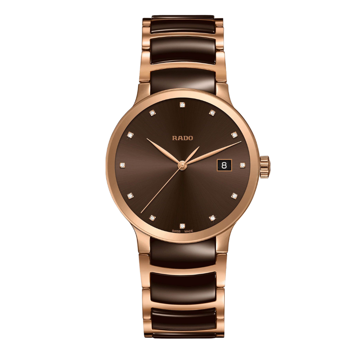 Rado Centrix Two-tone Ceramic Brown Dial Quartz Watch for Gents - R30554724