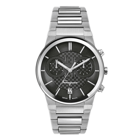 Salvatore Ferragamo Sapphire Silver Stainless Steel Black Dial Chronograph Quartz Watch for Gents - SFME00321