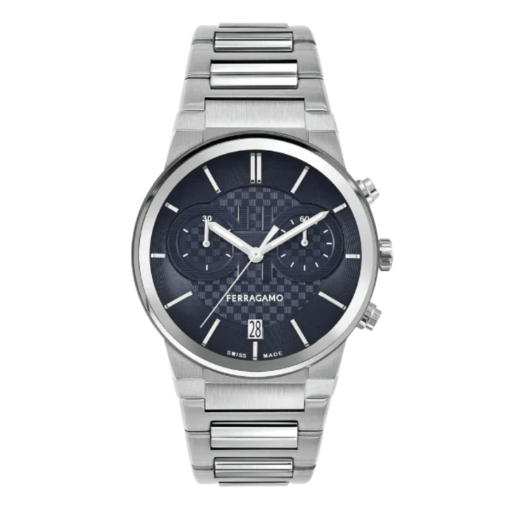 Salvatore Ferragamo Sapphire Silver Stainless Steel Blue Dial Chronograph Quartz Watch for Gents - ME01123