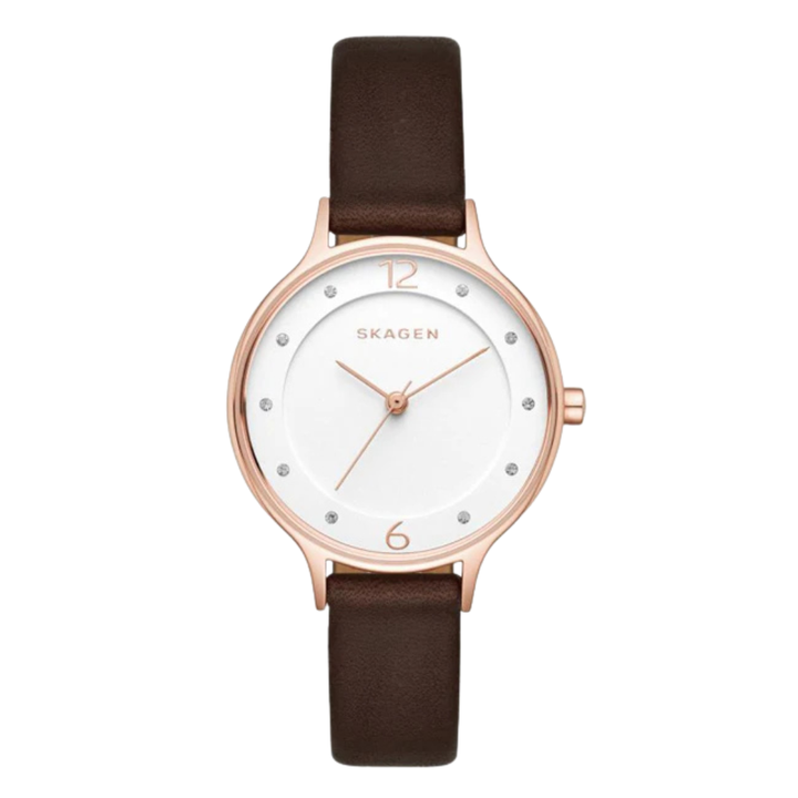 Skagen Anita Brown Leather Strap White Dial Quartz Watch for Ladies - SKW2472
