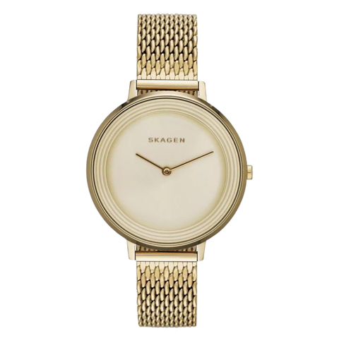 Skagen Ditte Gold Mesh Bracelet Gold Dial Quartz Watch for Ladies - SKW2333