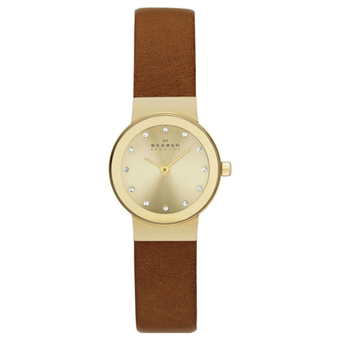 Add to WishlistSkagen Freja Brown Leather Strap Gold Dial Quartz Watch for Ladies - SKW2175