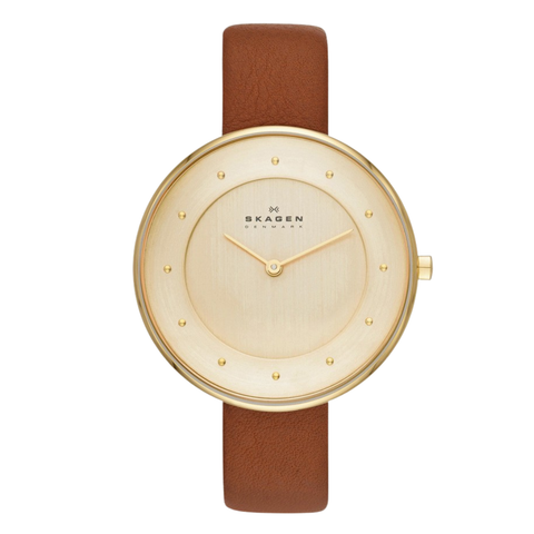 Add to WishlistSkagen Gitte Brown Leather Strap Gold Dial Quartz Watch for Ladies - SKW2138