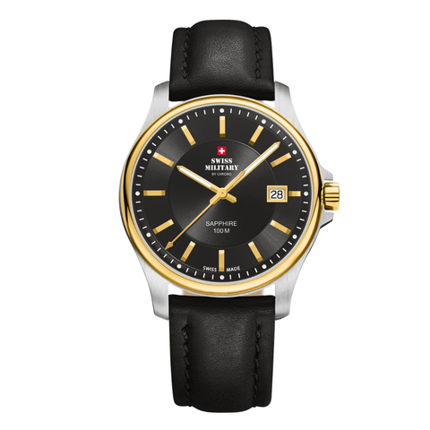 Swiss Military Black Leather Strap Black Dial Quartz Watch for Gents - SM30200.13