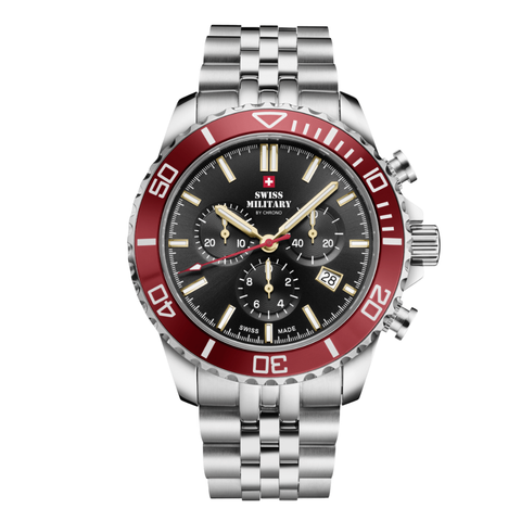 Add to WishlistSwiss Military Silver Stainless Steel Black Dial Chronograph Quartz Watch for Gents - SM34103.03