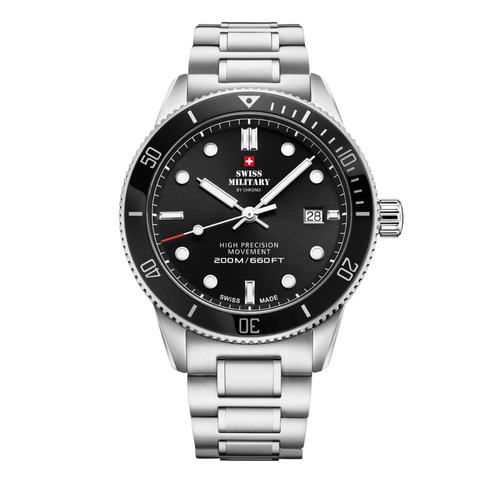Swiss Military Silver Stainless Steel Black Dial Quartz Watch for Gents - SM34088.01