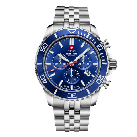 Swiss Military Silver Stainless Steel Blue Dial Chronograph Quartz Watch for Gents - SM34103.02