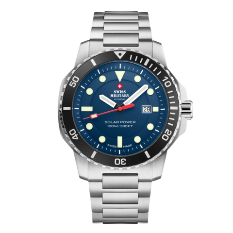 Swiss Military Silver Stainless Steel Blue Dial Quartz Watch for Gents - SMS34102.02