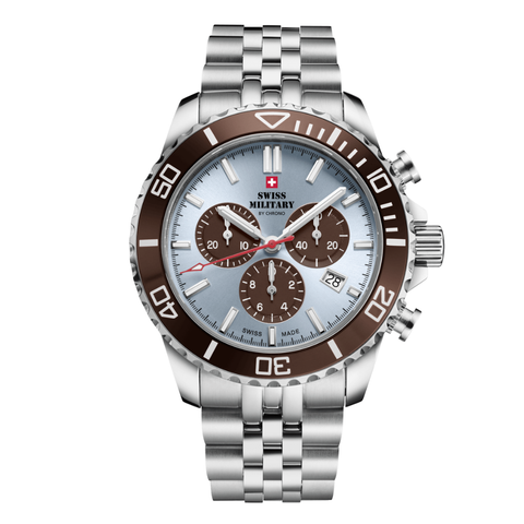 Swiss Military Silver Stainless Steel Light Blue Dial Chronograph Quartz Watch for Gents - SM34103.06
