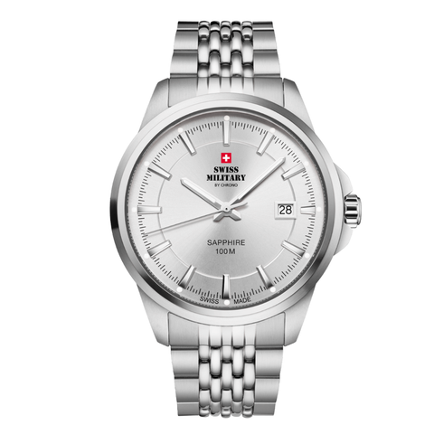 Swiss Military Silver Stainless Steel Silver Dial Quartz Watch for Gents - SM34104.02