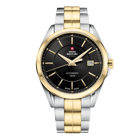 Swiss Military Two-tone Stainless Steel Black Dial Automatic Watch for Gents - SMA34085.05
