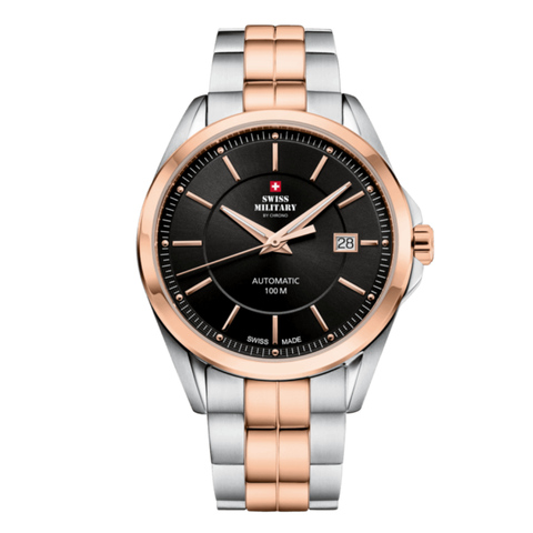 Swiss Military Two-tone Stainless Steel Black Dial Automatic Watch for Gents - SMA34085.08