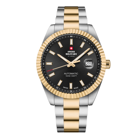 Swiss Military Two-tone Stainless Steel Black Dial Automatic Watch for Gents - SMA34110.05