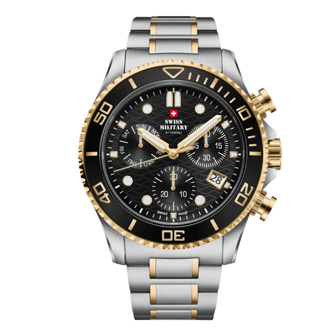 Swiss Military Two-tone Stainless Steel Black Dial Chronograph Quartz Watch for Gents - SM34101.03