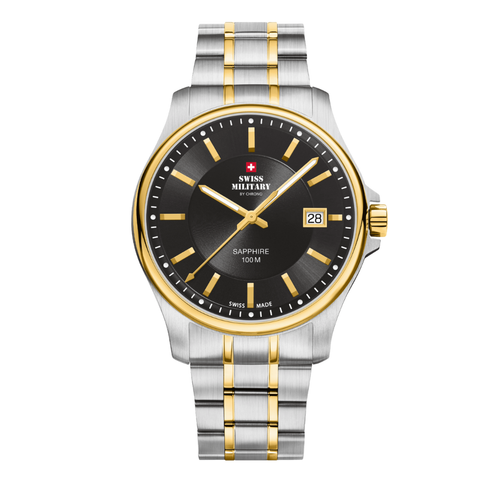 Swiss Military Two-tone Stainless Steel Black Dial Quartz Watch for Gents - SM30200.04