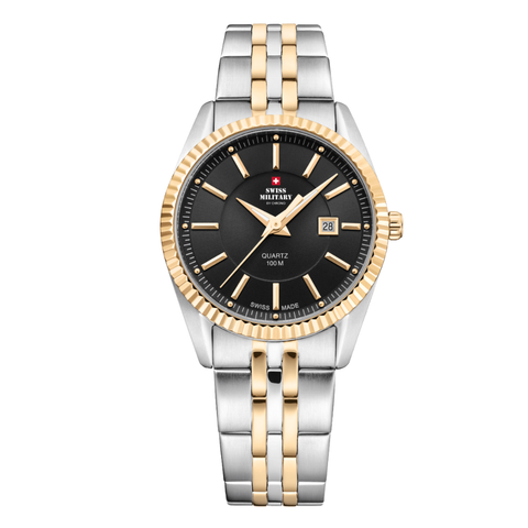 Swiss Military Two-tone Stainless Steel Black Dial Quartz Watch for Ladies - SM34066.04