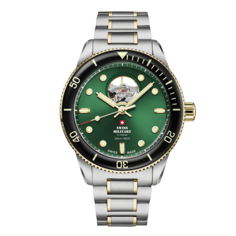 Swiss Military Two-tone Stainless Steel Green Dial Automatic Watch for Gents - SMA34106.13