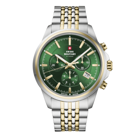 Swiss Military Two-tone Stainless Steel Green Dial Chronograph Quartz Watch for Gents - SM34107.08