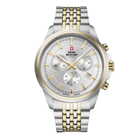 Swiss Military Two-tone Stainless Steel Silver Dial Chronograph Quartz Watch for Gents - SM34107.06