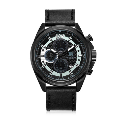 T5 Black Leather Strap Black Dial Chronograph Quartz Watch for Gents - H3704G-B