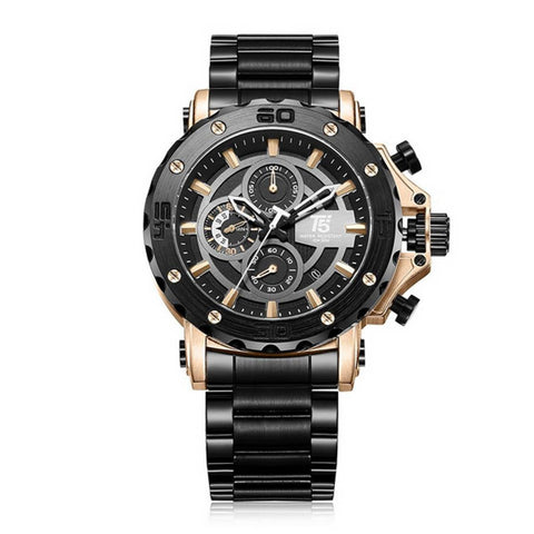 T5 Black Stainless Steel Black Dial Chronograph Quartz Watch for Gents - H3702G-E