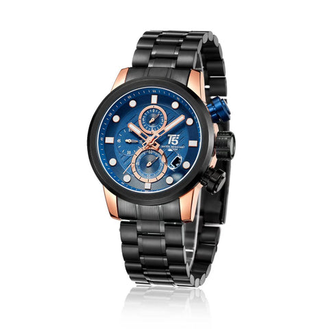 T5 Black Stainless Steel Blue Dial Chronograph Quartz Watch for Gents - H3587G-F