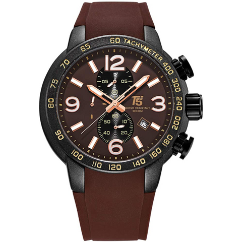 T5 Maroon Silicone Strap Maroon Dial Chronograph Quartz Watch for Gents - H3450G-I