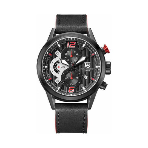 T5 Grey Leather Strap Black Dial Chronograph Quartz Watch for Gents - H3630G-C