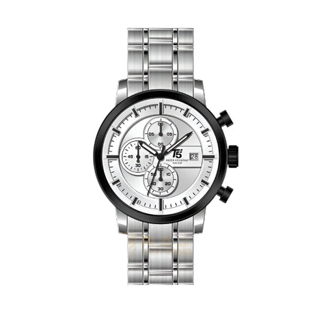 T5 Silver Stainless Steel Silver Dial Chronograph Quartz Watch for Gents - H3451G-A