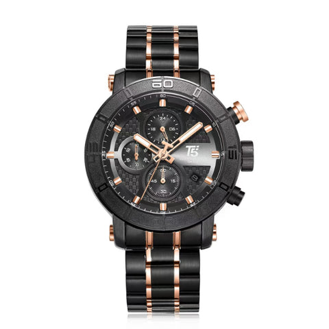 T5 Two-tone Stainless Steel Black Dial Chronograph Quartz Watch for Gents - H3635G-D