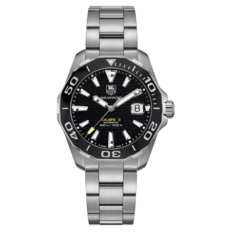 Tag Heuer Aquaracer Caliber 5 Silver Stainless Steel Black Dial Automatic Watch for Gents - WAY211ABA0928
