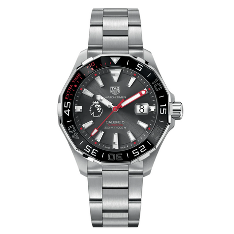 Tag Heuer Aquaracer Calibre 5 Premiere League Edition Silver Stainless Steel Black Dial Automatic Watch for Gents - WAY201D.BA0927