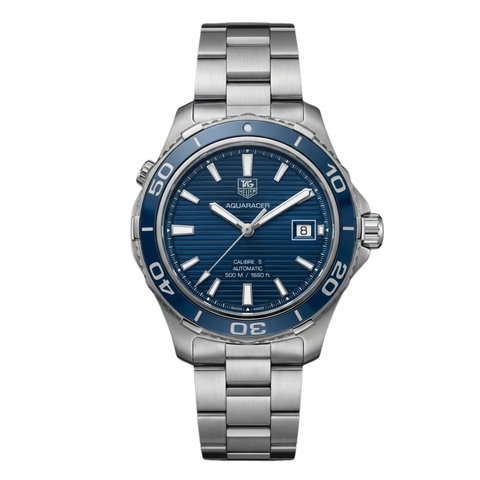 Tag Heuer Aquaracer Calibre 5 Silver Stainless Steel Blue Dial Automatic Watch for Gents - WAK2111.BA0830