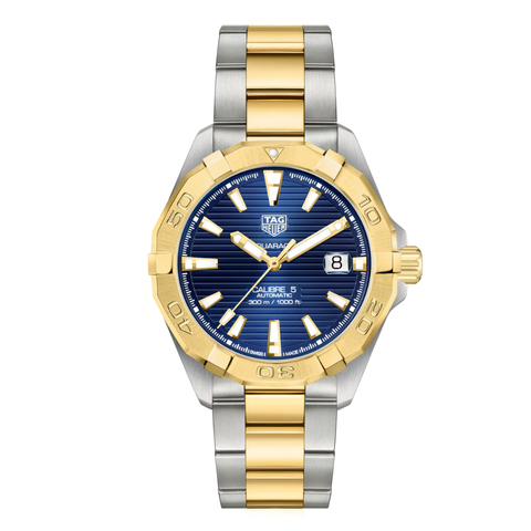 Tag Heuer Aquaracer Calibre 5 Two-tone Stainless Steel Navy Blue Dial Automatic Watch for Gents- WBD2120.BB0930