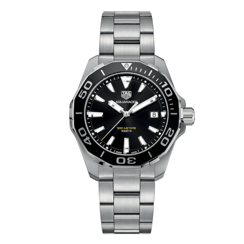 Tag Heuer Aquaracer Silver Stainless Steel Black Dial Quartz Watch for Gents - WAY111ABA0928