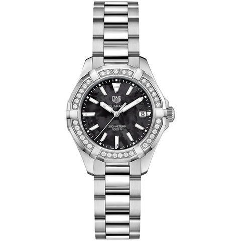 Tag Heuer Aquaracer Silver Stainless Steel Black Dial Quartz Watch for Ladies - WAY131PBA0748
