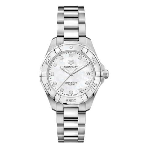 Tag Heuer Aquaracer Silver Stainless Steel White Mother of Pearl Dial Quartz Watch for Ladies- WBD1314.BA0740