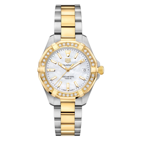 Tag Heuer Aquaracer Two-tone Stainless Steel White Mother of Pearl Dial Quartz Watch for Ladies - WBD1321.BB0320