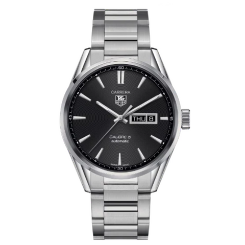 Tag Heuer Carrera Calibre 5 Silver Stainless Steel Black Dial Automatic Watch for Gents - WAR201A.BA0723