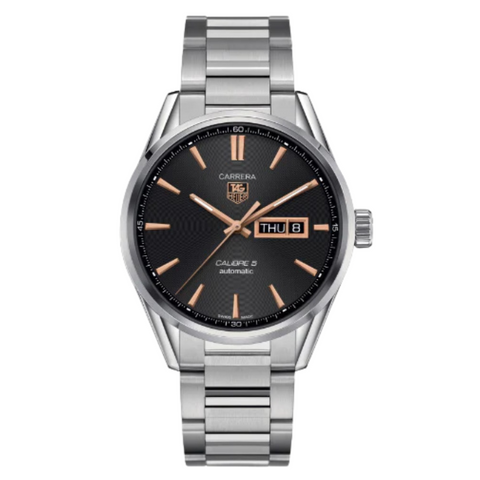 Tag Heuer Carrera Calibre 5 Silver Stainless Steel Black Dial Automatic Watch for Gents - WAR201CBA0723