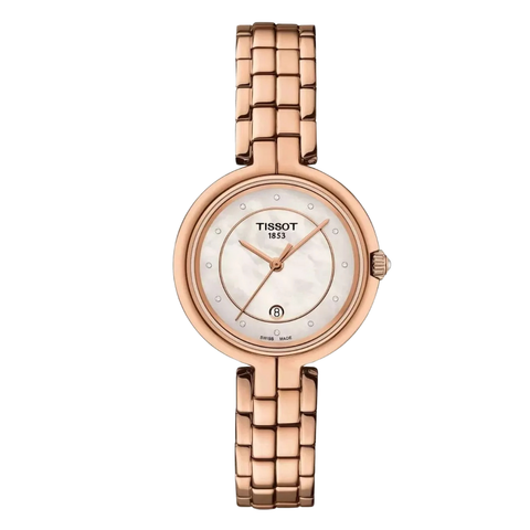 Tissot Flamingo Rose Gold Stainless Steel Pearl White Dial Quartz Watch for Ladies - T094.210.33.116.02