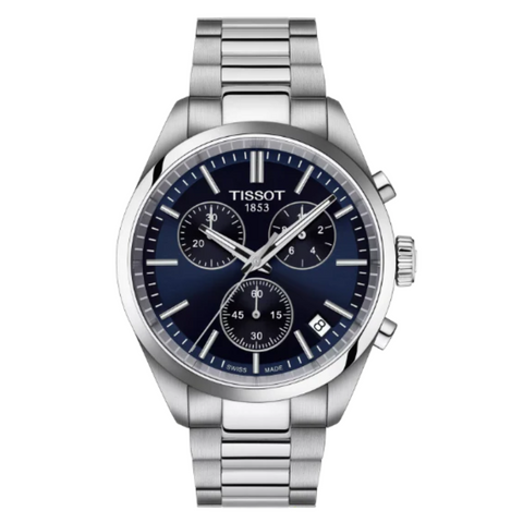 Add to WishlistTissot PR 100 Silver Stainless Steel Blue Dial Chronograph Quartz Watch for Gents - T150.417.11.041.00