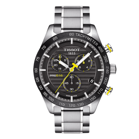 Tissot PRS 516 Silver Stainless Steel Black Dial Chronograph Quartz Watch for Men's - T.100.417.11.051.00