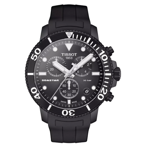 Tissot Seastar 1000 Black Rubber Strap Black Dial Chronograph Quartz Watch for Men's - T120.417.37.051.02
